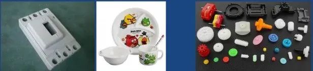 其中熱固性塑料為化學分子結(jié)構(gòu),一般是一次成型。如上左圖中開關(guān)面板和幼兒用的碗都是熱固性塑料加工而成的,它們具有耐高溫的特性,質(zhì)地堅硬、難以熔化,加熱后也不再軟化,過度加熱直接分解。