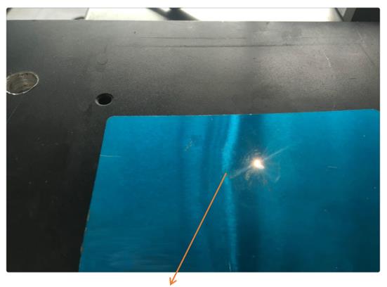 g) 在鏡頭下面載物臺上放上一張金屬名片或金屬板,打開激光,確定激光焦點(diǎn)